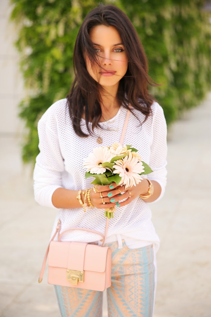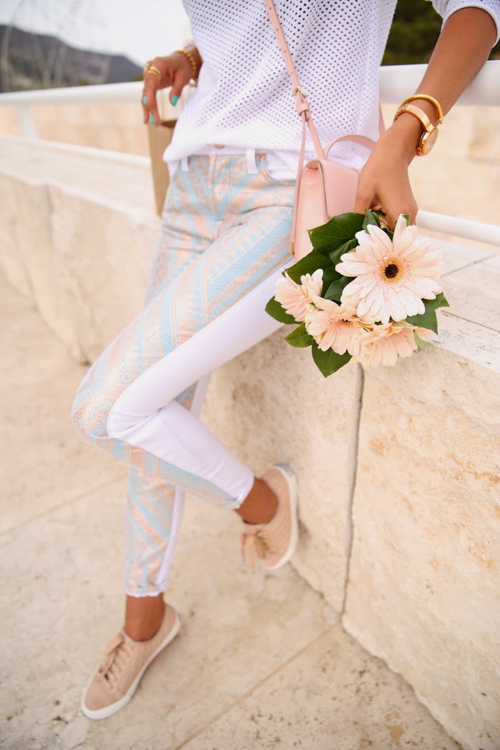 Guess you got a little preview of this outfit from an accessories post I did last Sunday (see here), though it did undergo a few minor changes. In the morning, Emil and I decided to grab some breakfast at one of our favorite places in West Hollywood and since I felt like dressing up a little, I opted to wear high heels and a white button-down. After breakfast, we went for what was supposed to be a casual stroll around Robertson Ave, which of course turned into a bit of a shopping thing. I was super happy about that, Emil probably not so much:) We ended up getting a few very cute things, my absolute favorites being Tory Burch sneakers and Sam & Lavi perforated tee. Now, you know how I feel about cute new things i.e. I simply can't resist the urge to wear everything new right away! So, when Emil suggested we catch the new Jackson Pollock exhibition at the Getty Center, I figured this was the perfect opportunity to swap my heels for some comfy sneakers and give my tired feet a bit of a break:) What do you guys think, do you like this outfit better with sneakers or with heels?