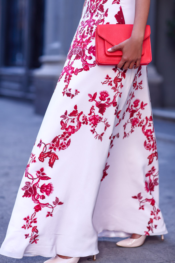 I found it on a recent trip to Ted Baker, and snatched it up as quickly as humanly possible. The funny thing is that I don't wear print all that much. You know me, I am very comfortable in my solid brights or black and white. Yet, every once in a while, when I come across a printed gown as gorgeous as the one I am wearing in today's post, I kick myself for not wearing print more often.